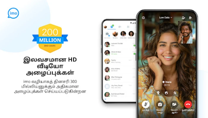 imo உடன் உலகை உங்கள் விரல் நுனியில் கொண்டு வாருங்கள். தொலைதூர உறவுகளையும் நெருக்கமாக்கி, அன்பானவர்களுடன் இணைந்திருக்க ஒரு இலவசப் பாலமாக imo திகழ்கிறது. ஒவ்வொரு நாளும் இலட்சக்கணக்கான மக்கள், துல்லியமான மற்றும் மிருதுவான HD வீடியோ அழைப்புகள் மூலம் தங்கள் குடும்பத்தினருடனும் நண்பர்களுடனும் தடையின்றிப் பேச imo-ஐப் பயன்படுத்துகின்றனர். சர்வதேச எல்லைகள் கடந்து, கட்டணமின்றி நீங்கள் மேற்கொள்ளும் ஒவ்வொரு அழைப்பும், ஒரு நேரடிச் சந்திப்பைப் போன்ற அனுபவத்தைத் தரும் வகையில் உயர் தரத்தில் உறுதி செய்யப்படுகிறது. எந்தவித மறைக்கப்பட்ட கட்டணங்களோ அல்லது சந்தா தொந்தரவுகளோ இன்றி, வரம்பற்ற உரையாடல்களையும் குழு அரட்டைகளையும் அனுபவித்திடுங்கள்.