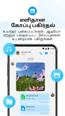 imo வெறும் அழைப்பு செயலி மட்டுமல்ல; அது ஒரு முழுமையான தகவல் தொடர்பு தளம். அதிவேகமான 5G முதல் எளிமையான 2G இணைப்பு வரை, எந்தவித இணையச் சூழலிலும் நிலையான ஆடியோ மற்றும் வீடியோ அழைப்புகளை மேற்கொள்ளுங்கள். பலவீனமான சிக்னல் இருக்கும்போதும் கூட, உங்கள் செய்திகள், குரல் பதிவுகள் மற்றும் கோப்புகள் நம்பகத்தன்மையுடன் சென்றடைவதை imo உறுதி செய்கிறது. நண்பர்களுடன் புகைப்படங்களையும் வீடியோக்களையும் பகிரவும், குரல் செய்திகளை அனுப்பவும், முக்கிய ஆவணங்களை (DOC, MP3, ZIP, PDF) பரிமாறவும் imo மெஸஞ்சர் வசதி செய்கிறது. உங்கள் சாதனத்தின் சேமிப்பக இடத்தைப் பாதுகாத்து, அனைத்துச் செய்தியிடல் வரலாற்றையும் imo Cloud-இல் பாதுகாப்பாகச் சேமித்து, எப்போது வேண்டுமானாலும் அணுகலாம்.