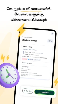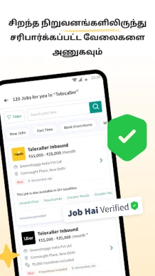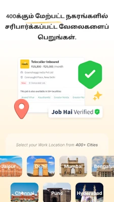 உங்கள் கனவு வேலையைத் தேடுகிறீர்களா? நம்பகமான மற்றும் சரிபார்க்கப்பட்ட வேலை வாய்ப்புகளுக்கான உங்கள் ஒருமித்த தளம் Job Hai. Flipkart, Zomato, Uber, Grofers போன்ற முன்னணி நிறுவனங்களால் வழங்கப்பட்ட அருகிலுள்ள வேலைகளைக் கண்டறியலாம். ஒவ்வொரு விண்ணப்பத்திற்கும் உடனடிப் பதில் மற்றும் மனிதவள நிர்வாகிகளை நேரடியாகத் தொடர்பு கொள்ளும் வசதியுடன், பொருத்தமான மற்றும் நல்ல சம்பளத்துடன் கூடிய வேலைகளைப் பெறுவதற்கு Job Hai உங்களுக்கு வழிவகுக்கிறது. நீங்கள் விண்ணப்பிக்கும் வேலைகள் குறித்த பின்னூட்டத்தைப் பெறும் ஒரே தளமாக இது திகழ்கிறது.