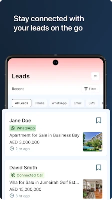 சொத்து வணிகத்தில் உங்கள் வெற்றி, வாடிக்கையாளர்களின் தேவைகளைத் துல்லியமாகப் புரிந்துகொள்வதிலும், திறம்பட செயல்படுவதிலும்தான் உள்ளது. Bayut வழங்கும் Profolio™ செயலி, இந்தச் சவால்களை திறம்பட எதிர்கொள்ள உங்களுக்கு உதவும் ஒரு வலிமையான கருவியாகும். SmartLeads™ மூலமாக, சொத்து தேடுபவர்களின் விருப்பங்கள் குறித்த ஆழமான, தரவு அடிப்படையிலான நுண்ணறிவுகளைப் பெறுங்கள். பல்வேறு தளங்களிலிருந்து வரும் அனைத்து வர்த்தக வாய்ப்புகளையும் ஒரே இடத்தில் ஒருங்கிணைத்து, தொலைபேசி அழைப்புகள், மின்னஞ்சல்கள் அல்லது WhatsApp வழியாக அவர்களுடன் உடனடியாகத் தொடர்புகொள்ளலாம். பதிவுசெய்யப்பட்ட அழைப்புகளைக் கேட்டு, உங்கள் வருங்கால வாடிக்கையாளர்களின் எதிர்பார்ப்புகளைத் தெளிவாகப் புரிந்துகொண்டு, உங்கள் அணுகுமுறையை மேம்படுத்துங்கள்.