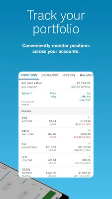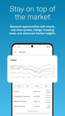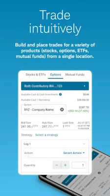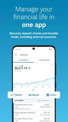 Schwab Mobile செயலி மூலம் பங்குகள், விருப்பங்கள், ETFகள், மியூச்சுவல் ஃபண்டுகள் ஆகியவற்றில் முதலீடு செய்து வர்த்தகம் செய்யலாம். உங்கள் பணத்தைப் பரிமாறி, போர்ட்ஃபோலியோவைக் கண்காணித்து, செக்குகளை டெபாசிட் செய்து, நிதி வாழ்க்கையை எங்கிருந்தும் எளிதாக நிர்வகிக்கலாம்.